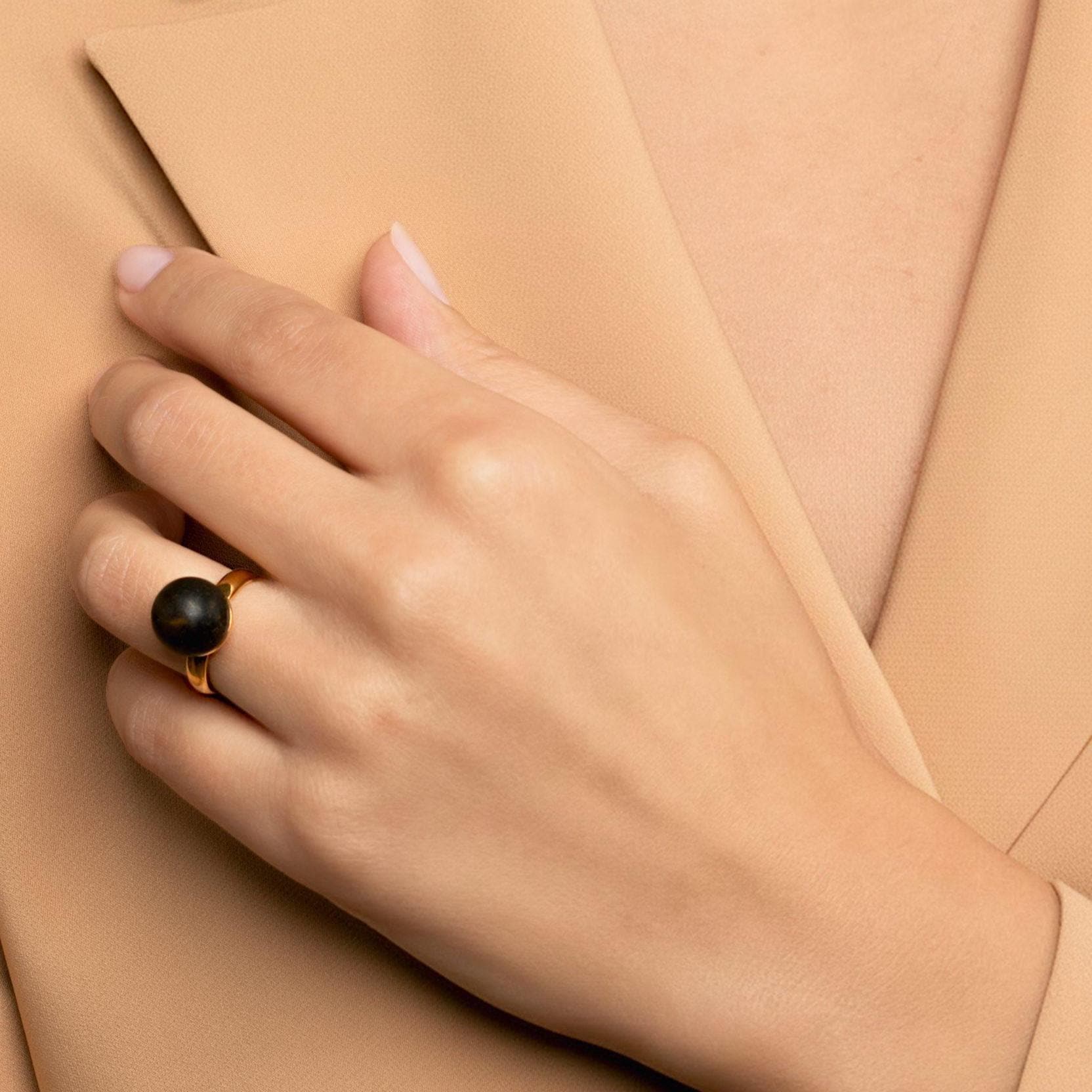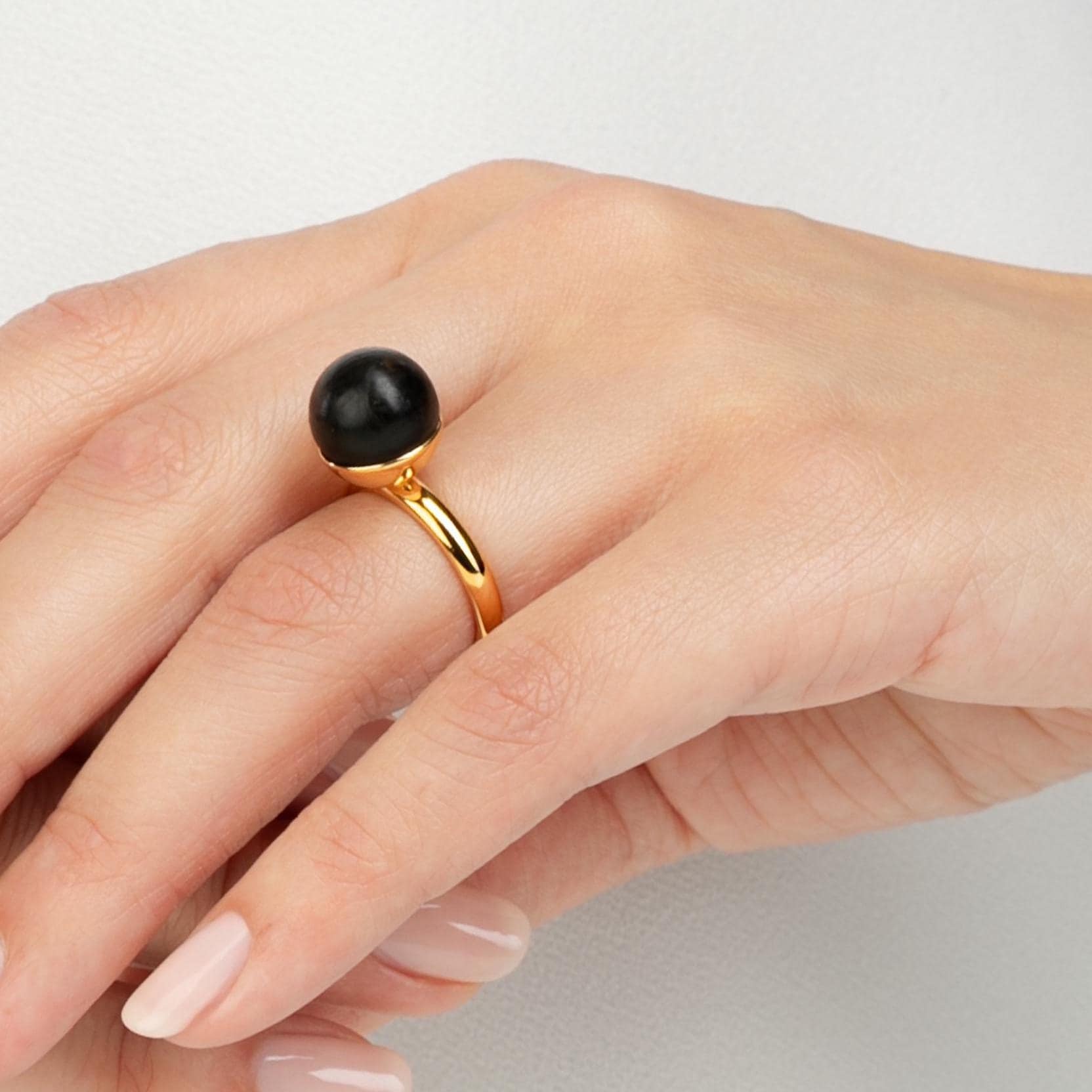 This dark amber statement ring is made of 24k gold vermeil and genuine black Baltic amber. The GOLDEN NERO ring captivates the essence of Nature‘s beauty with its‘ subtle neutral shades and will become a chic addition to your look. This Baltic amber ring is comfortable to wear. It will complement your favorite outfits everyday with sophisticated elegance and will stand out from the crowd.