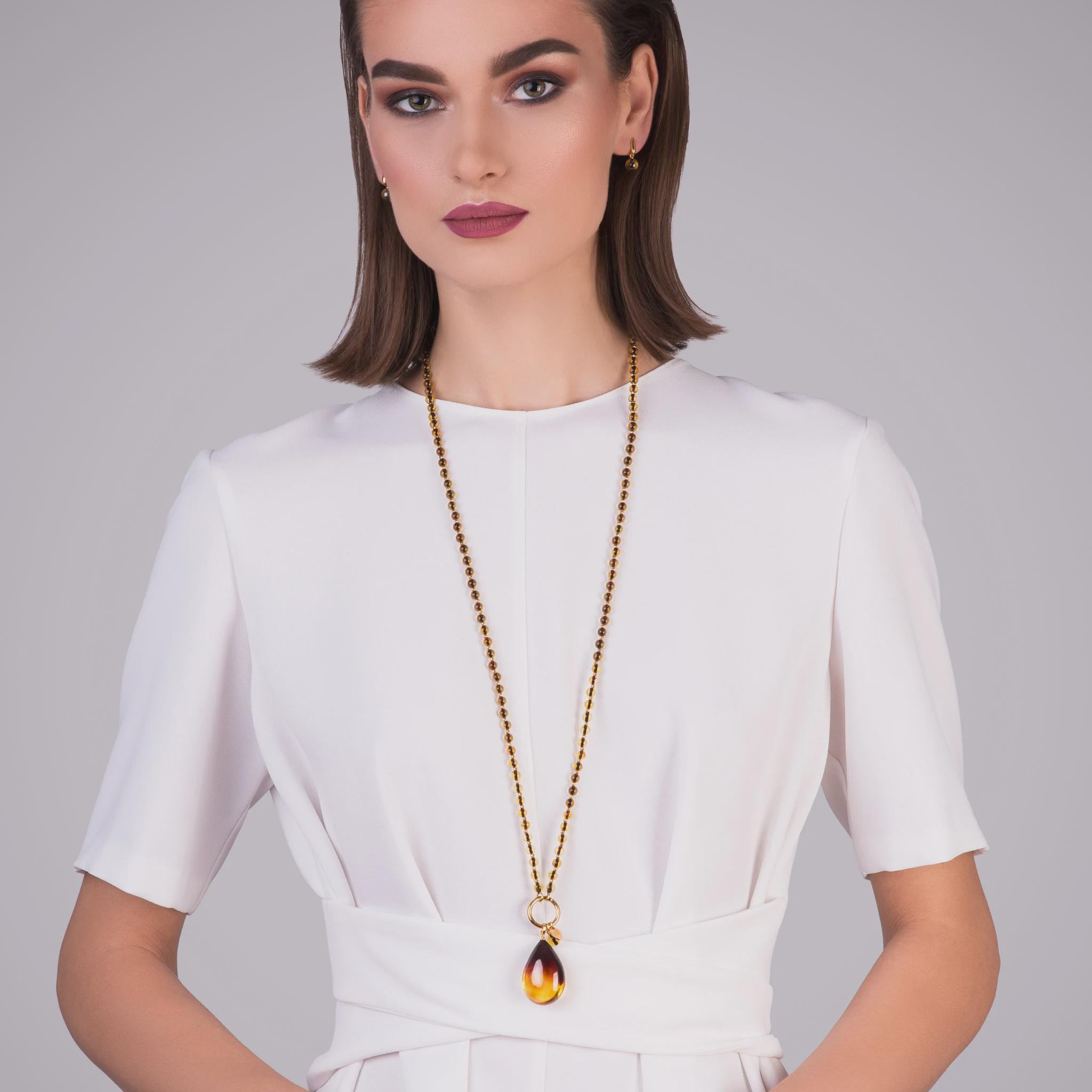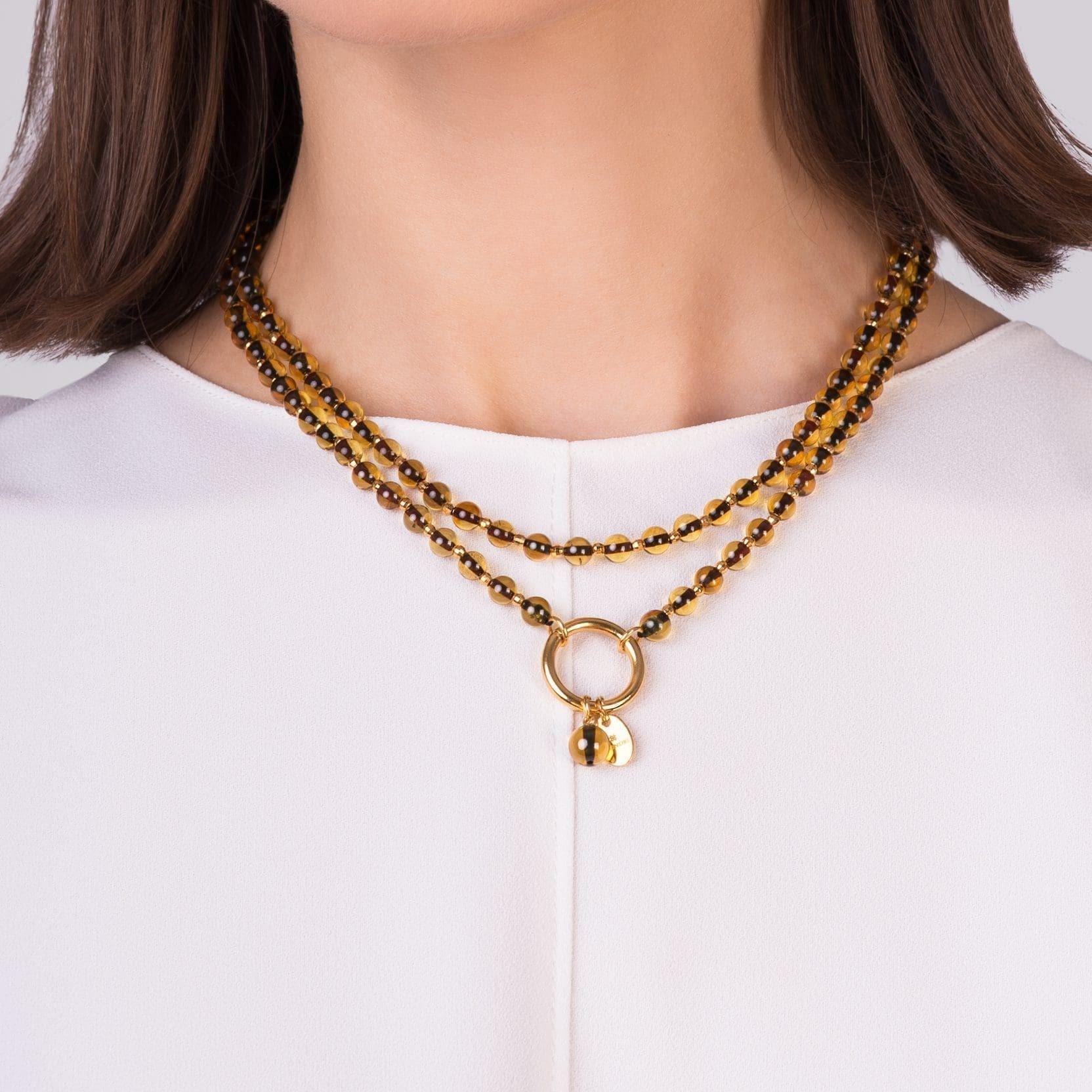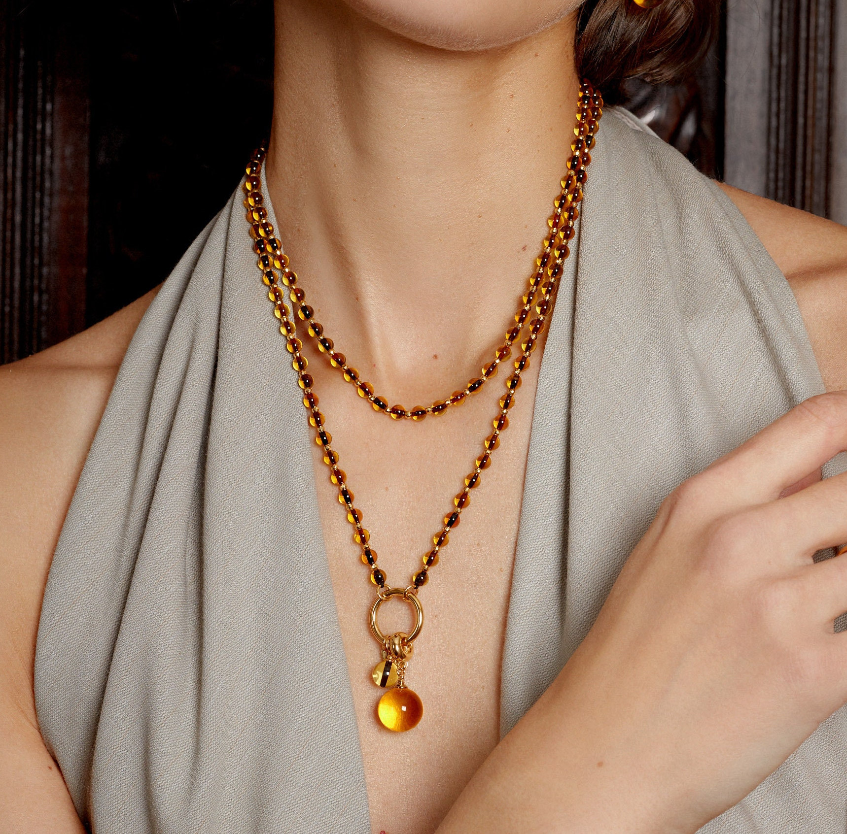 Closure: Flexible ring clasp in 24k gold vermeil, decorated with branded tag and single amber bead