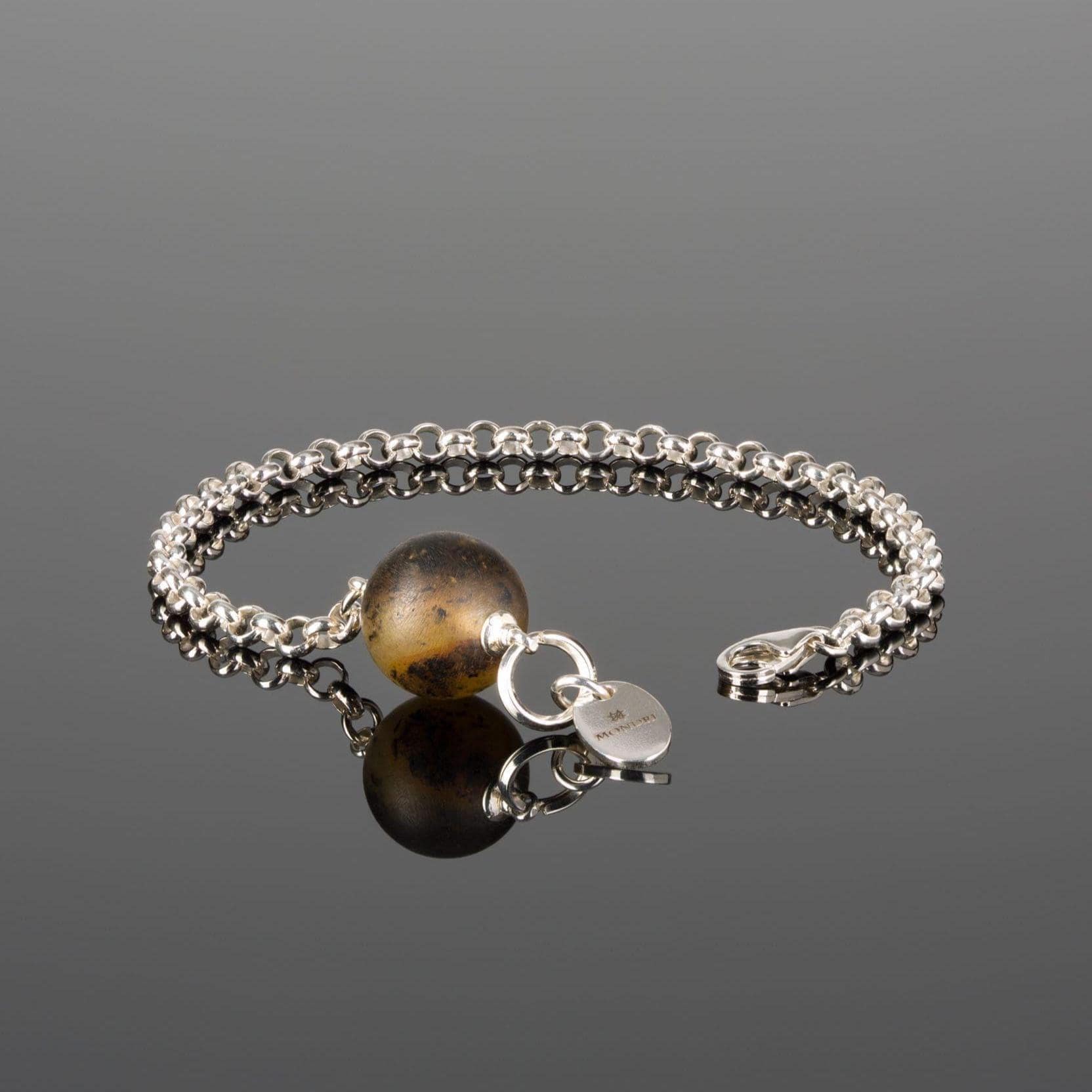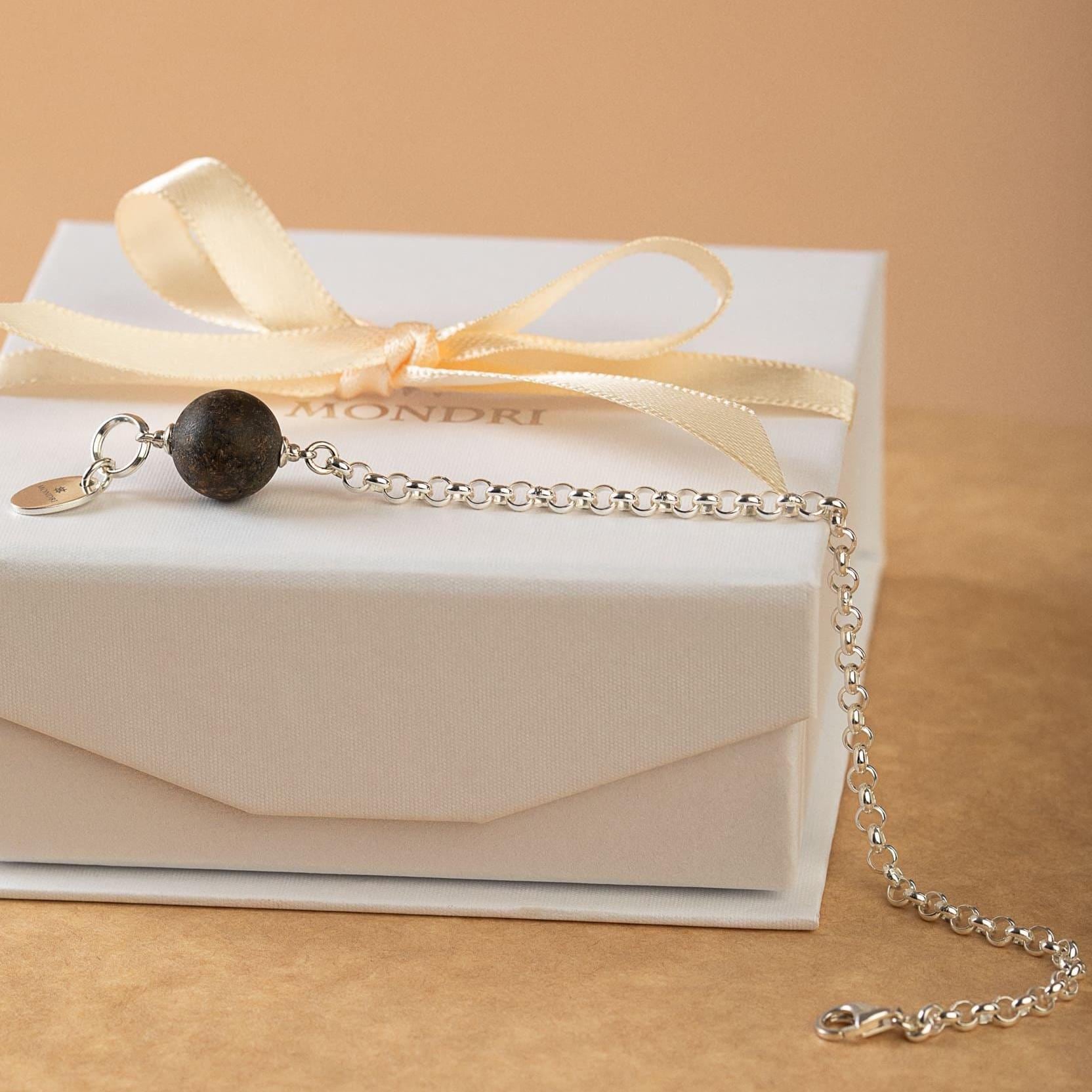 Handcrafted from genuine black Baltic amber and a delicate sterling silver rolo chain, this bracelet features a single statement bead with deep, earthy tones. From rich black to warm coffee and subtle honey hues, the amber reveals its natural beauty in changing light.