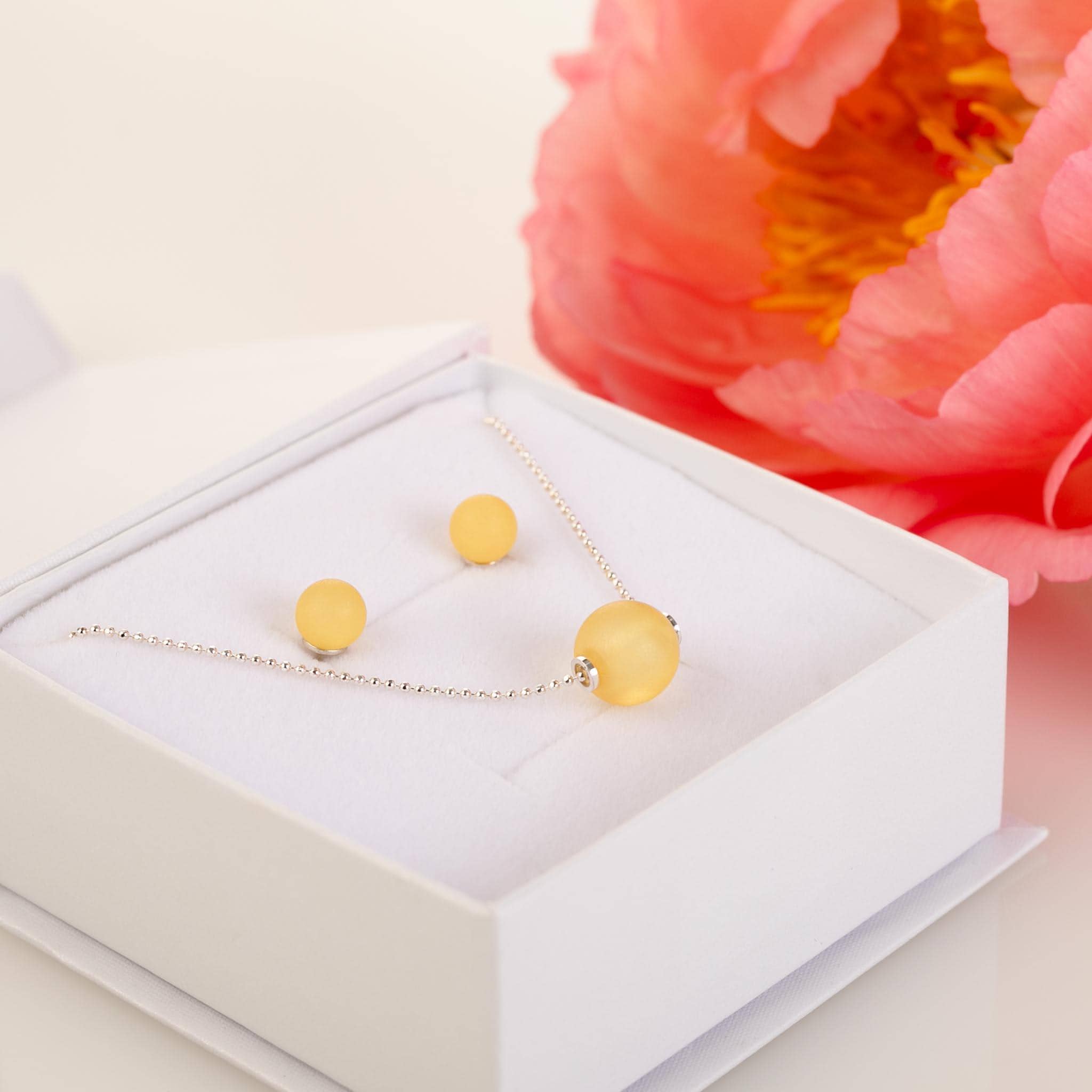Fresh, light, and effortlessly elegant — the LEMON Baltic Amber jewelry set captures the delicate beauty of natural amber in its most refined form.