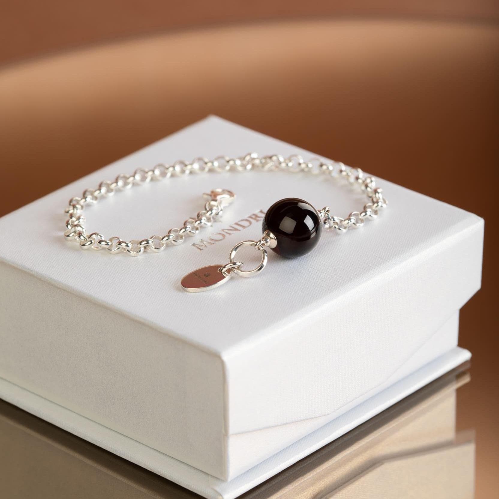 The CHERRY Baltic amber bracelet highlights the natural beauty of deep red Baltic amber in its purest, most refined form. This rich cherry tone appears almost dark in low light, yet reveals a warm red glow when touched by sunlight — a natural transformation that makes this piece truly captivating.