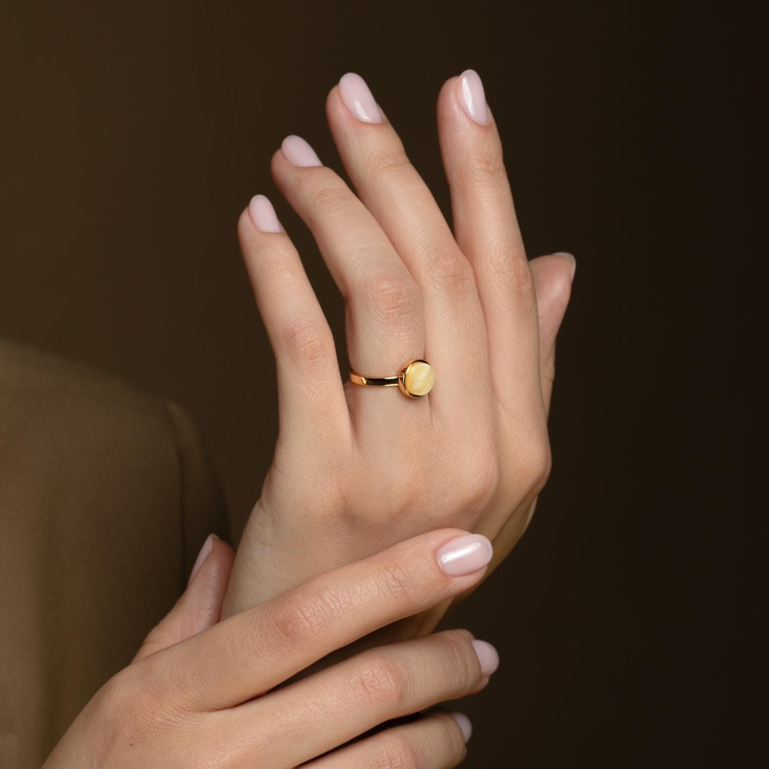 This Baltic amber geometric ring is a statement piece and can serve many occasions. Be it an alternative engagement ring, anniversary gift for wife or graduation gift for daughter! We can confirm - women love it. White gemstone ring is handcrafted from 24k gold vermeil and white natural Baltic amber, and is one of a kind because we handpick unique gemstone pieces and choose only the most beautiful parts to create original statement jewelry. Every ring is unique with its color, patterns and shadows.