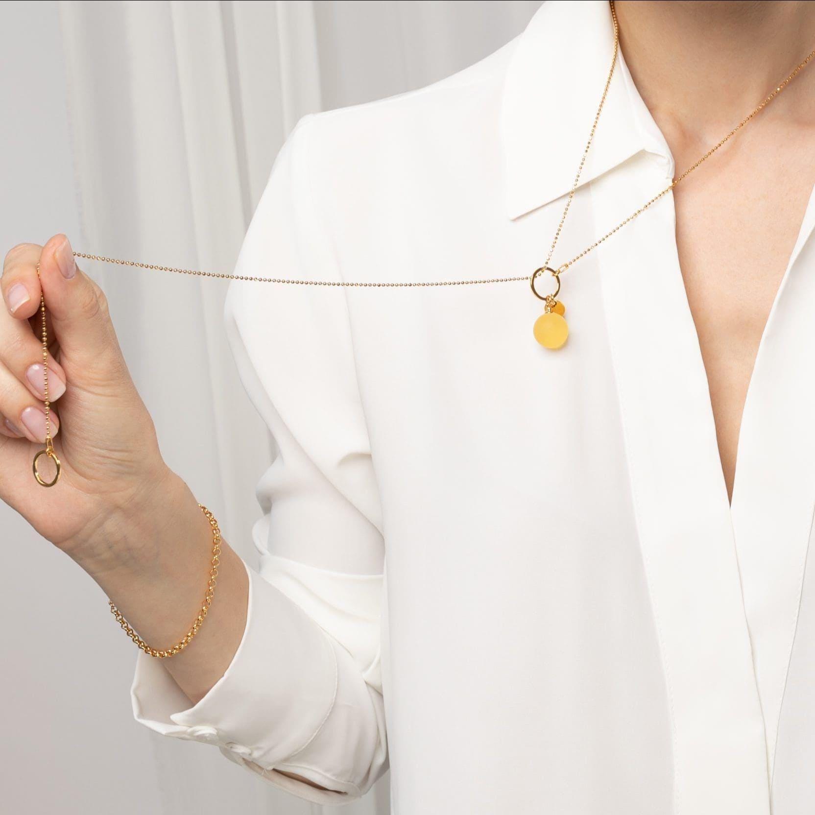 Delicate Baltic amber adjustable lariat pendant in 24k gold vermeil features genuine yellow amber charm which is unique due to its color - yellow, pastel honey. This piece of jewelry is adjustable and you can wear it as a long Y necklace or a double strand chain necklace. Improvise with this lariat necklace to achieve different looks and create unique style! Simply pull it up or down and you will find endless possibilities to wear GOLDEN LEMON lariat according to your outfit.