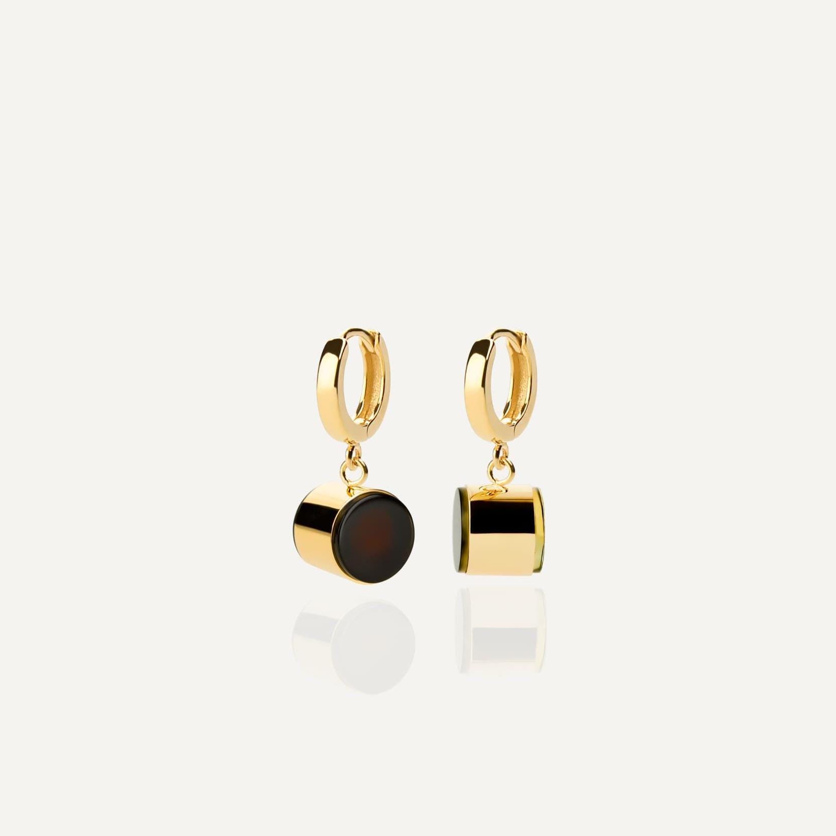 The amber appears nearly black at first glance, revealing a rich cherry hue when touched by the light—making these the perfect amber earrings for modern, artistic, and design-forward wardrobes.