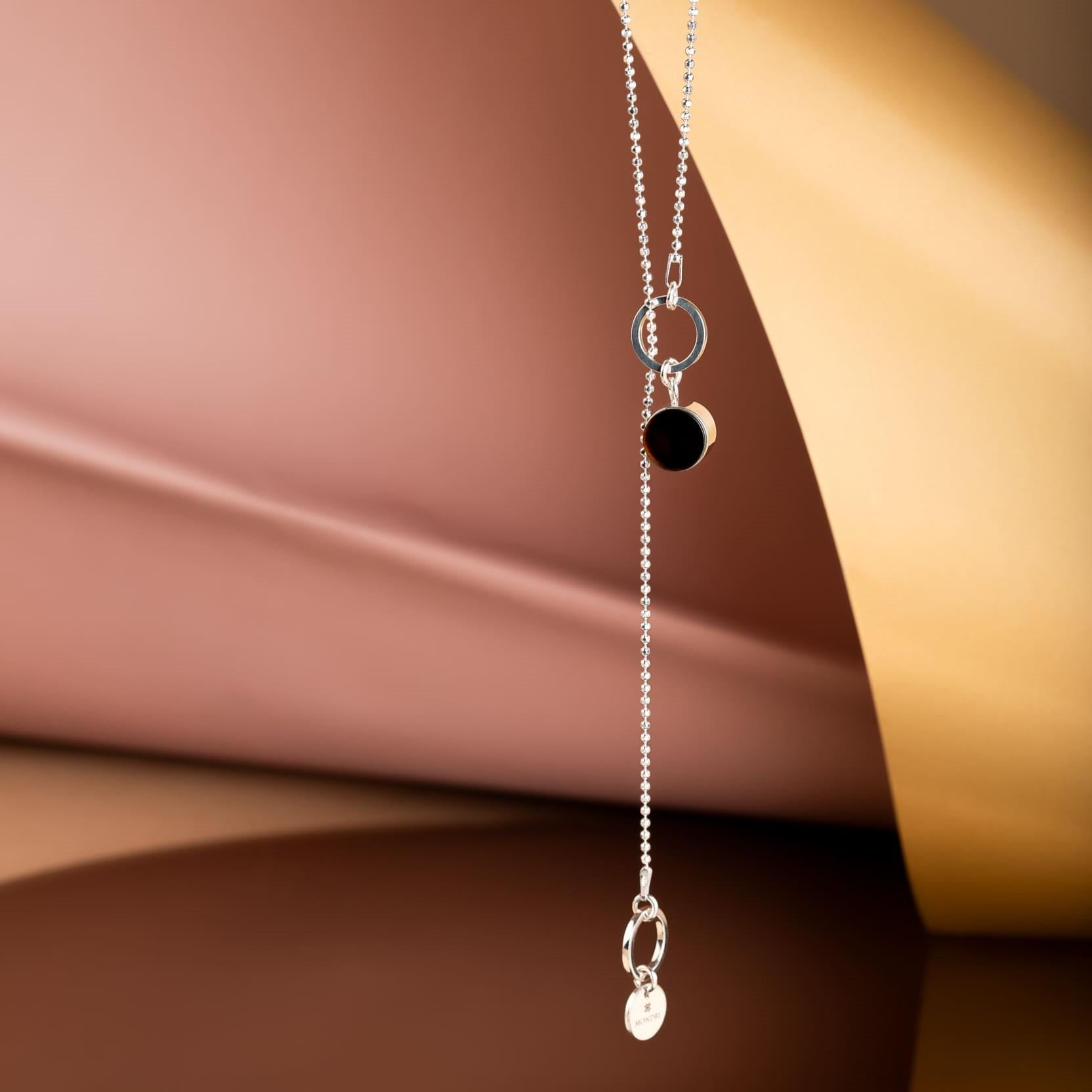 The length is easily adjustable – the pendant’s position shifts with your styling needs. Wrap the chain twice around the neck to transform it into a short, close-fitting piece.