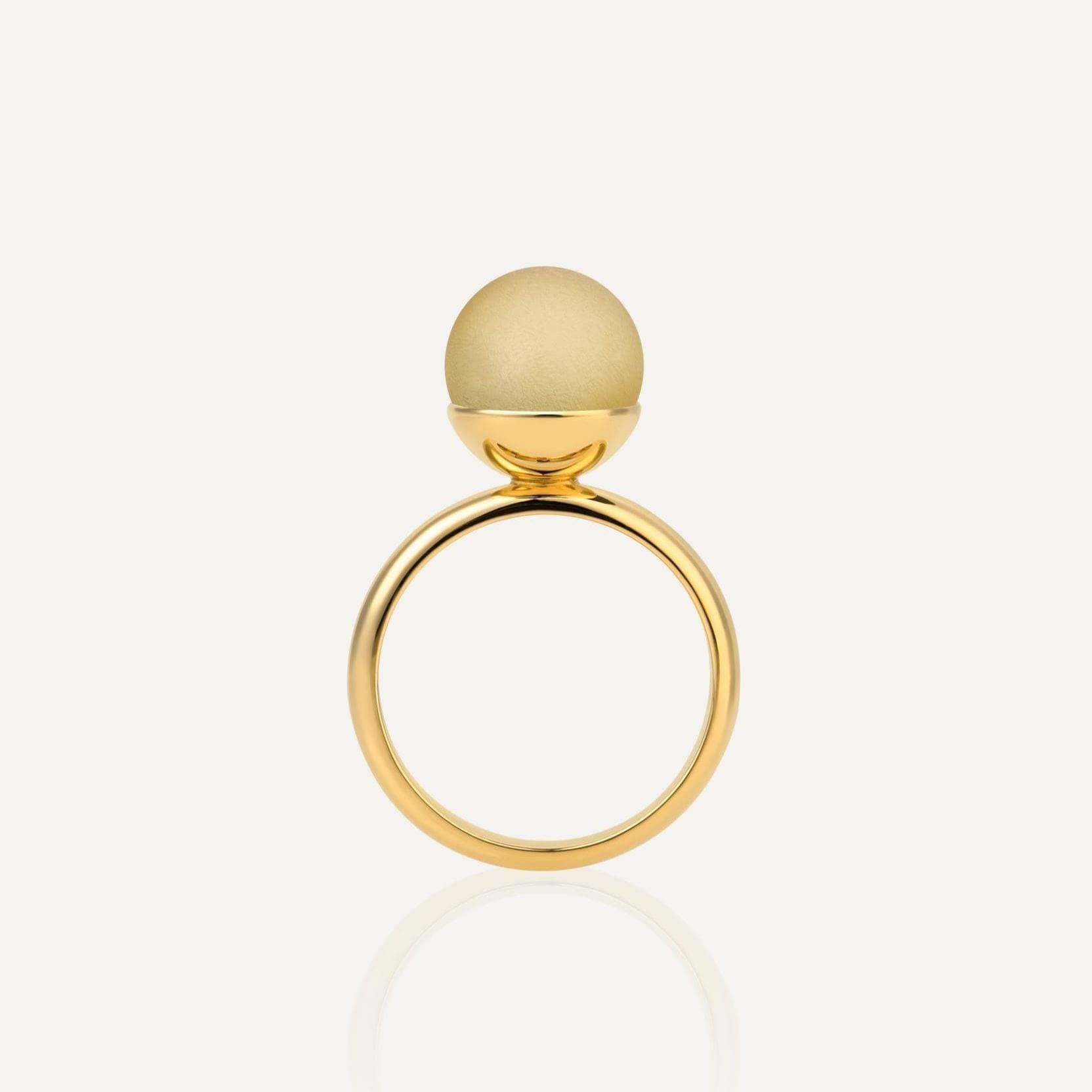 This handcrafted ring features a stunning round Baltic amber gemstone, known for its exceptional lemon-yellow hue. What makes it truly unique? The amber is polished using a special technique to achieve a frosted matte finish, giving the ring a soft, velvety appearance – reminiscent of early morning sunlight or dew-kissed petals.
