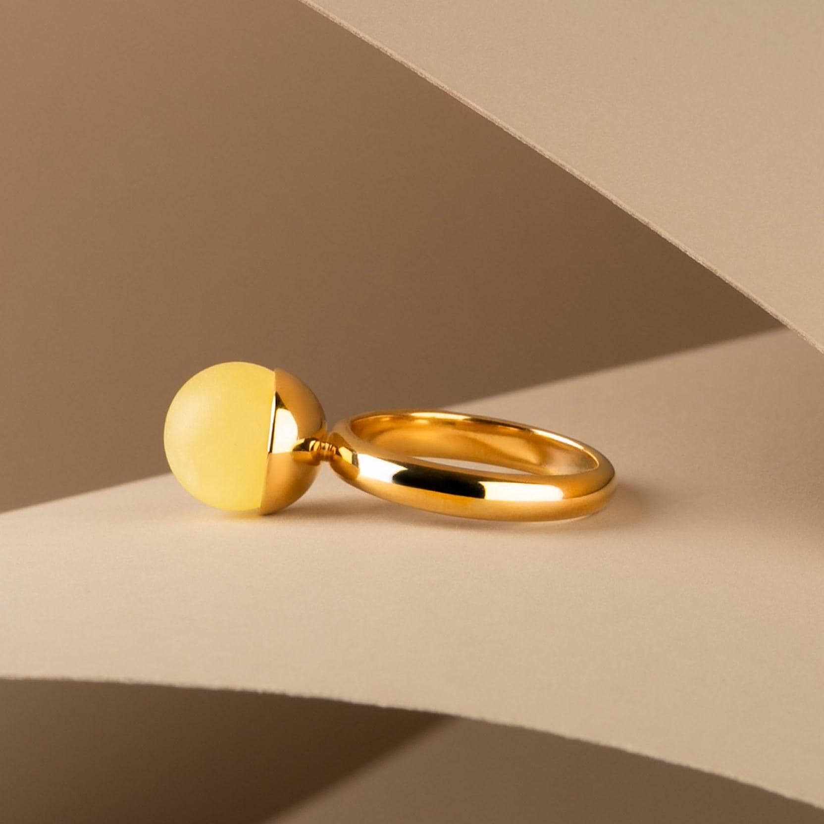 Bring a ray of sunshine to your jewelry collection with this frosted yellow Baltic amber ring – a minimalist statement piece with a radiant soul.