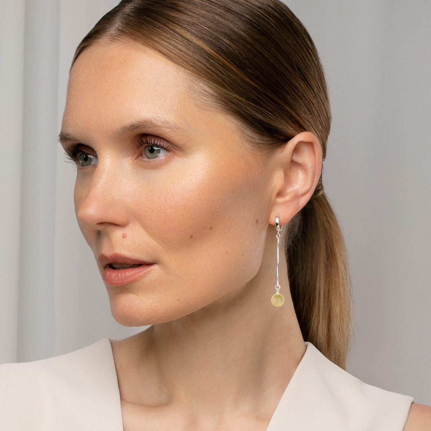 Long drop earrings LEMON matched with other jewelry of LEMON AMBER collection create a unique and unforgettable look. Add a spark of freshness with Minimalist silver bracelet LEMON: https://www.etsy.com/listing/1232406053