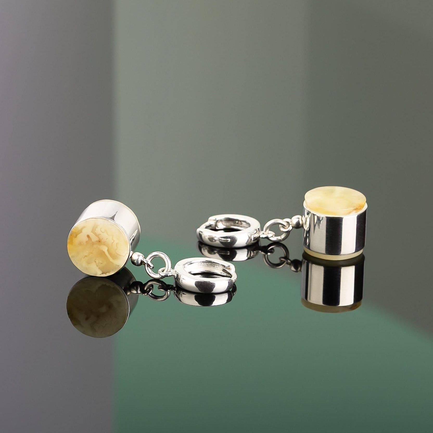Beautiful white amber earrings that are great for every day wear. They are generally well made - the only issue is that I had a difficult time opening one earring. It was so stuck closed that my husband used two pair of needle nose pliers to open it and thus made a tiny scratch on one. Still, I would likely order from this seller again as their pieces are lovely and unique.