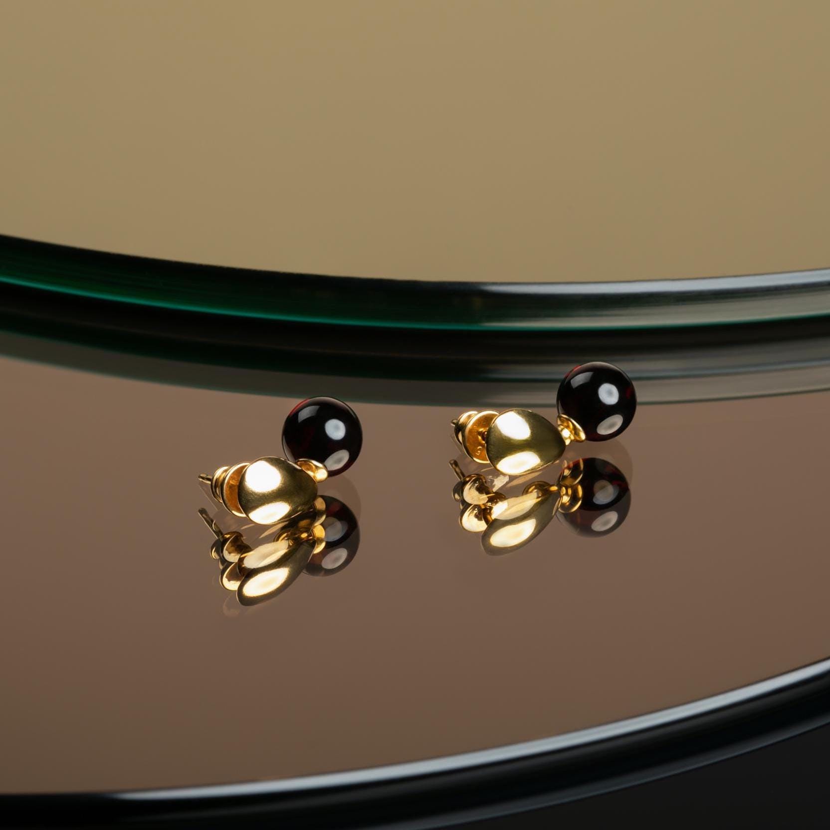 Add a touch of elegance to your everyday style with these dark cherry red Baltic Amber drop earrings, handcrafted in a minimalist design with secure stud fastening and gold vermeil details. Their deep wine hue appears almost black in low light, making them an effortlessly chic piece that transitions beautifully from day to night.