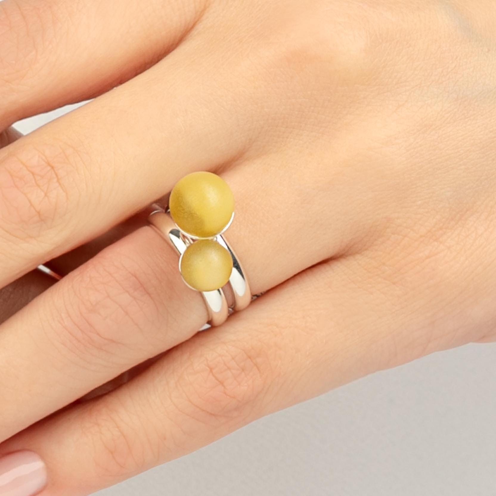 We polished these pieces of amber in a certain way to get a frosted matte look and create a feeling of freshness. The subtle bright color of amber lights up and will add some extra shine to your signature look. Statement amber rings are comfortable to wear and it will complement your favorite outfits with bright pop of color.