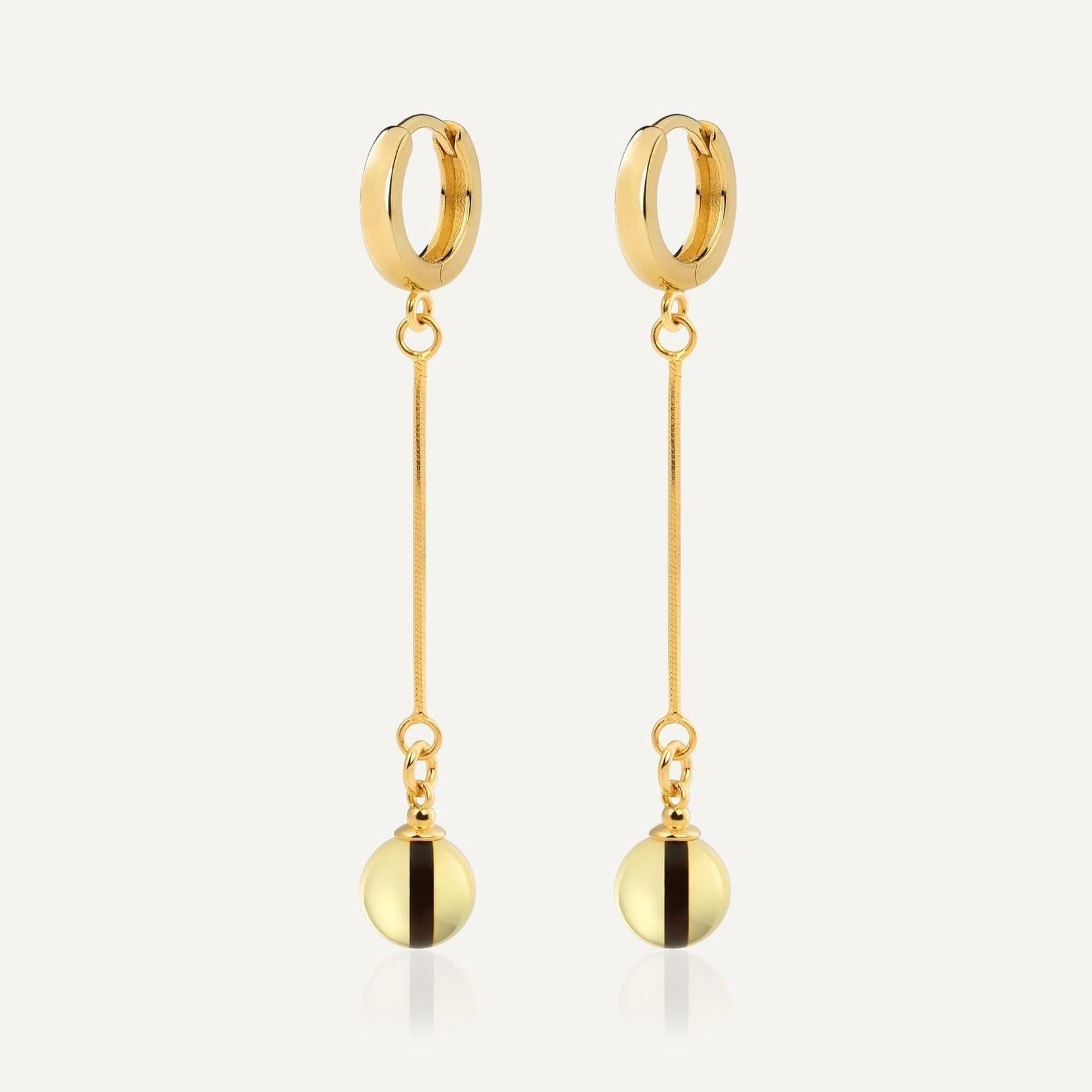 A pair of delicate Baltic amber beads gently dangle from golden chains, securely fastened in place. These handcrafted earrings feature natural yellow amber paired with a 24k gold vermeil finish, creating a beautiful blend of warmth and elegance. Perfect for adding a subtle, refined touch to any outfit.