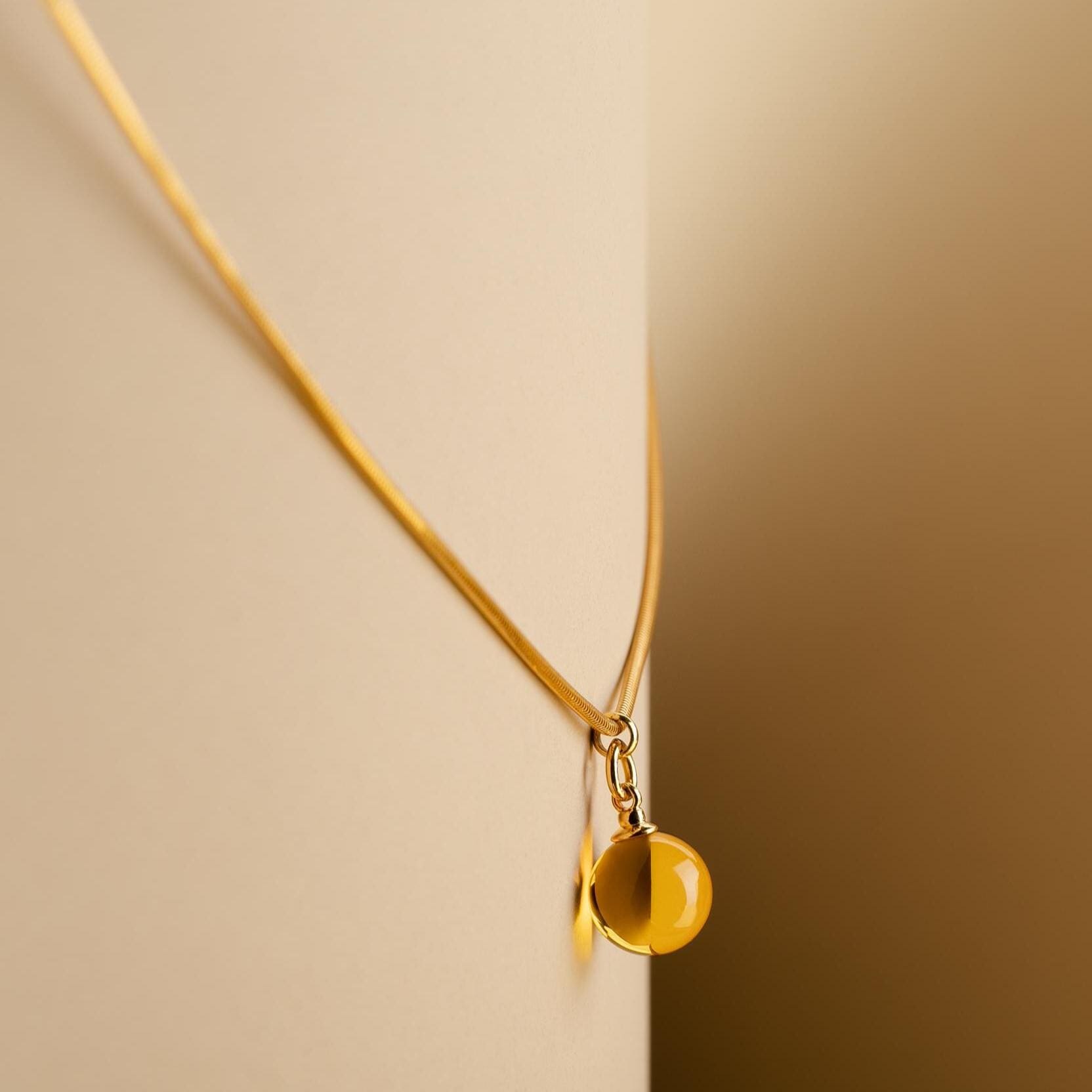 Introducing the minimalist necklace adorned with honey-colored Baltic amber, known as GOLDEN LUNAR – a delicate jewelry piece that effortlessly complements both everyday and holiday attire. The yellow Baltic amber boasts a unique purity and warm cognac tones, imparting a subtle yet luxurious impression to this round amber pendant. For added convenience and versatility, the necklace features an adjustable chain, with lengths ranging from 40 cm to 45 cm. This allows you to tailor the necklace’s length to your liking, ensuring it perfectly suits your style, whether it’s a casual day or a special occasion.