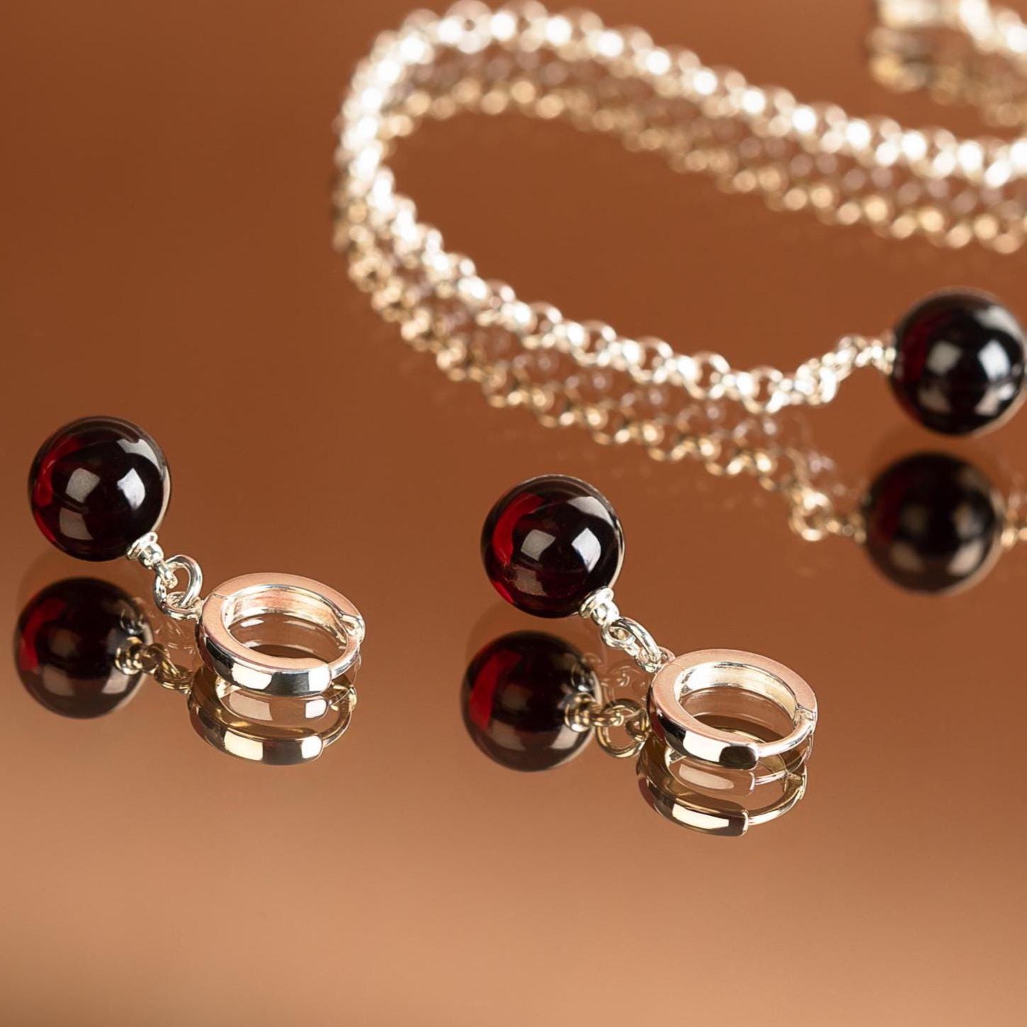 Crafted from deep cherry red Baltic amber, these earrings reveal a luxurious wine-like glow that shifts beautifully in the light. From dark burgundy to warm red tones, the amber creates a captivating depth that feels both elegant and modern.