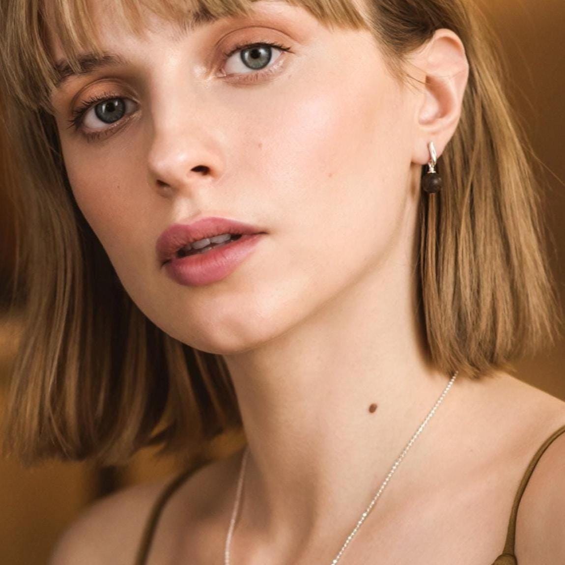 Dark amber drop earrings with stud BLACK BERRIES