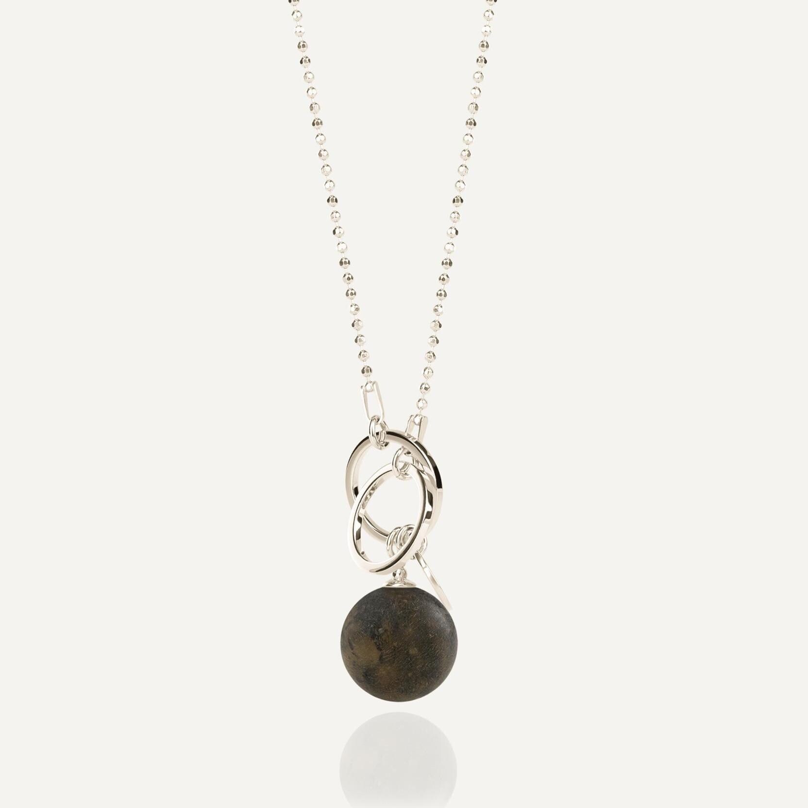 This silver necklace features a unique black Baltic amber pendant, combining modern sophistication with minimalist design. With a sleek silver bead chain and a striking dark gemstone charm, this adjustable lariat offers effortless elegance. Its adaptable style makes it perfect for both casual outings and evening occasions, adding a touch of subtle luxury to any look. Whether you pull it higher for a refined appearance or lower for a relaxed vibe, the black stone lariat necklace provides endless possibilities to complement your outfit with grace and subtle charm.