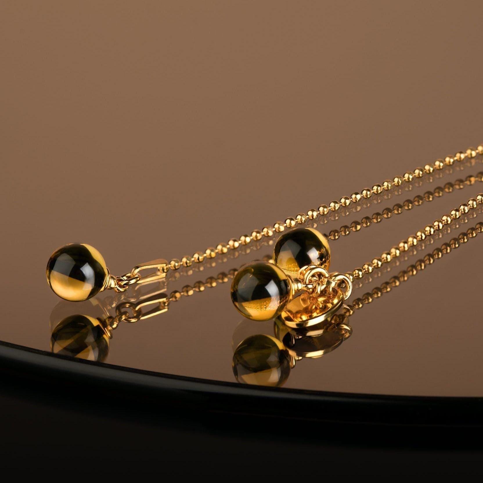 TIGER – an exclusive adjustable lariat necklace for women, featuring Baltic amber pendants. The gold vermeil lariat necklace elegantly drapes around the neck, adding a touch of luxury, while the playful transparent amber pendants serve as a highlight that accentuates both cozy daily and festive styles. By holding the necklace’s gold vermeil tunnel, you can adjust the height of transparent yellow amber pendants. This minimalist lariat y necklace will look modern and easily complement anything from flowing shirts to dresses.