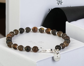 Dark Baltic Amber Bracelet for Men: Sterling Silver Clasp